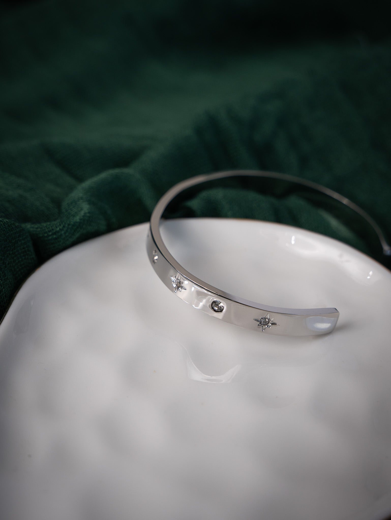 Elevate your style with the Astra Bangle set, crafted from hypoallergenic stainless steel for both durability and comfort. Featuring a minimalist design adorned with sparkling cubic zirconia, this bracelet set adds a subtle touch of sophistication to any ensemble. Perfect for layering or wearing alone, the Astra Bangle complements your look with timeless elegance and modern refinement.