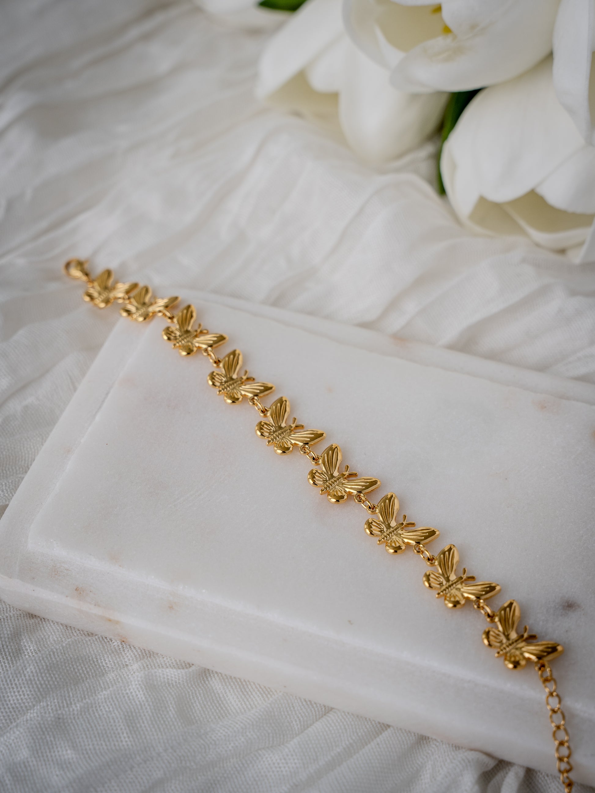 Indulge in luxury with the Aurefly Bracelet. This multi butterfly bracelet is crafted with waterproof 18K gold and PVD plated stainless steel for a flawless, opulent look. The perfect addition to any outfit, this bracelet exudes elegance and sophistication. Elevate your style and make a statement with Aurefly.