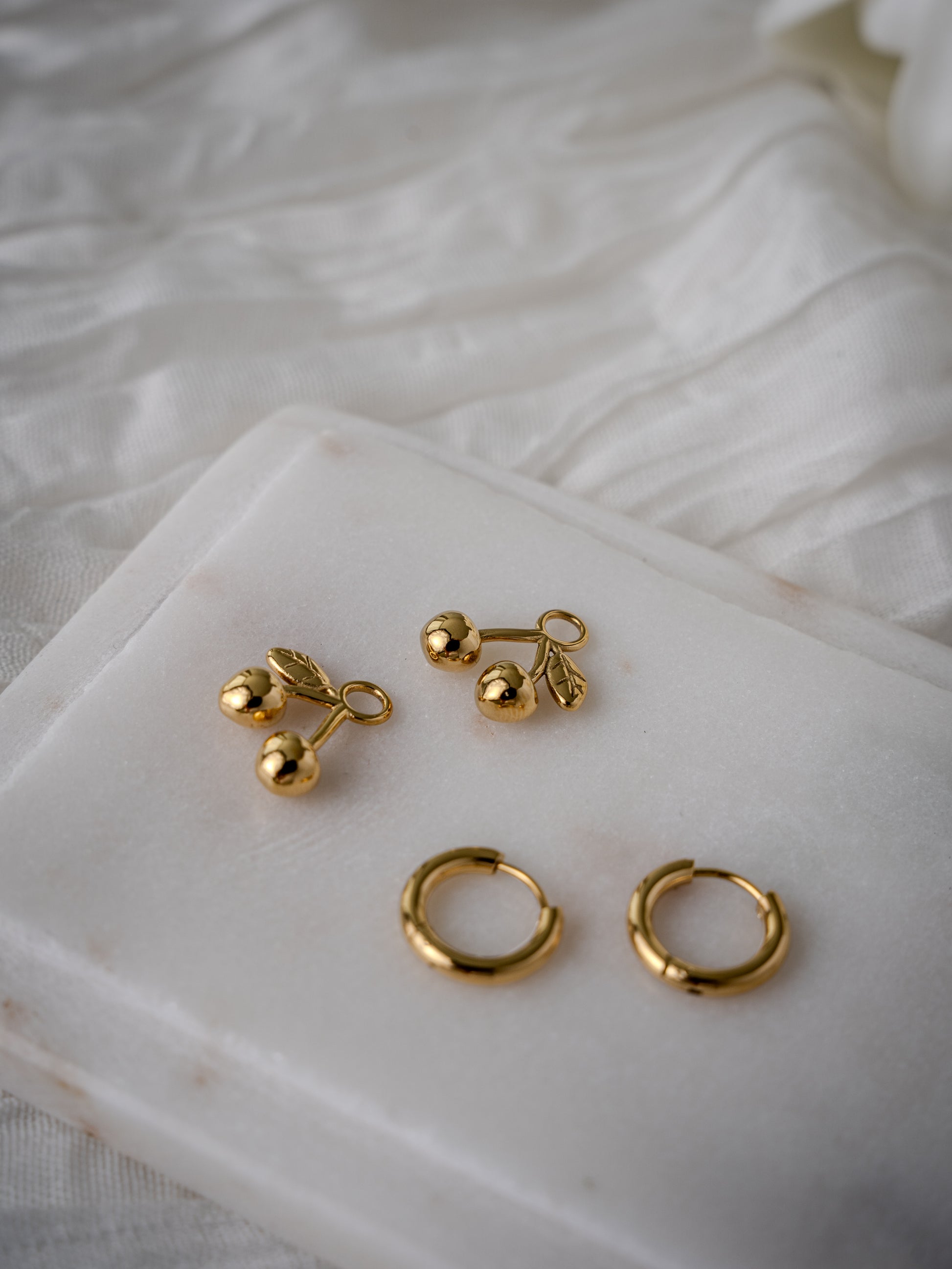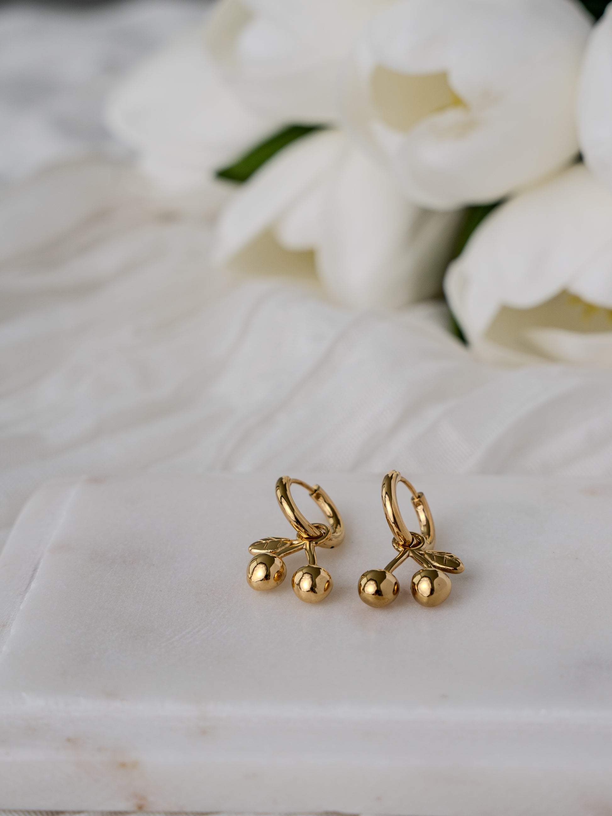 Introducing our Chérie Earrings, a cute and stylish addition to your jewelry collection. These exquisite earrings feature a delightful cherry drop design made of 18K PVD gold plated stainless steel. The pendant is also removable, giving you the option for a 2-in-1 earring. Elevate your look with these exclusive and versatile earrings.