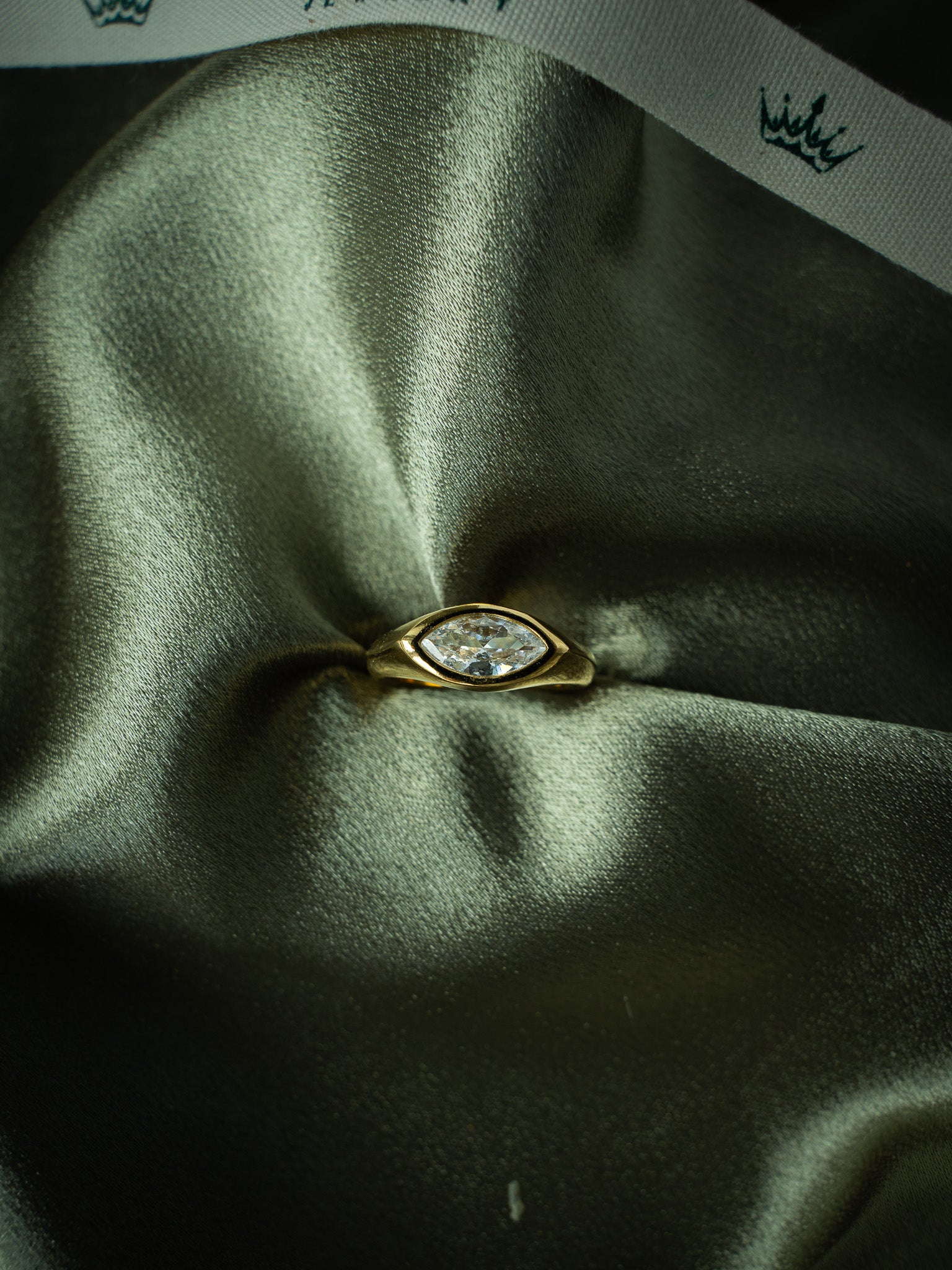 Indulge in luxury with the Nova Ring. Crafted with 18K gold plating and white eye zirconia, this dainty yet elegant ring is the perfect statement piece for any occasion. Made with high-quality stainless steel, it exudes sophistication and charm. Elevate your style with the Nova Ring.