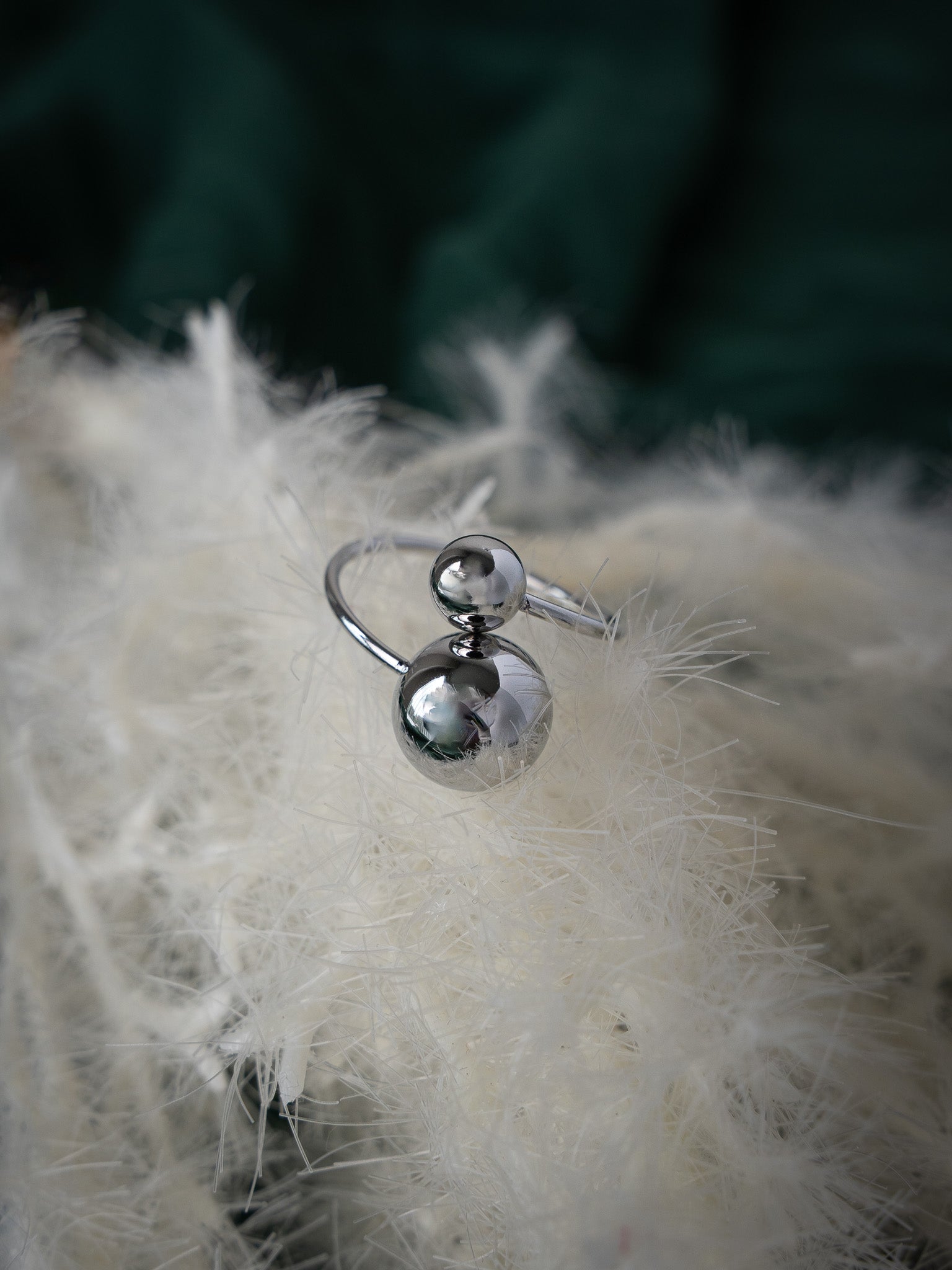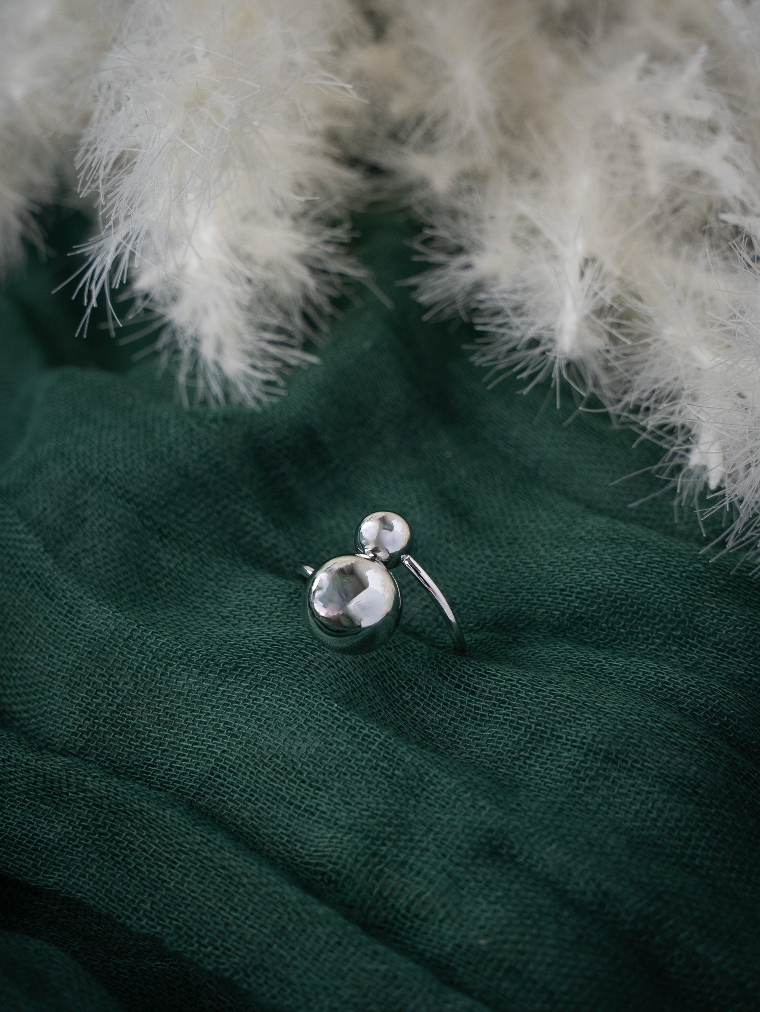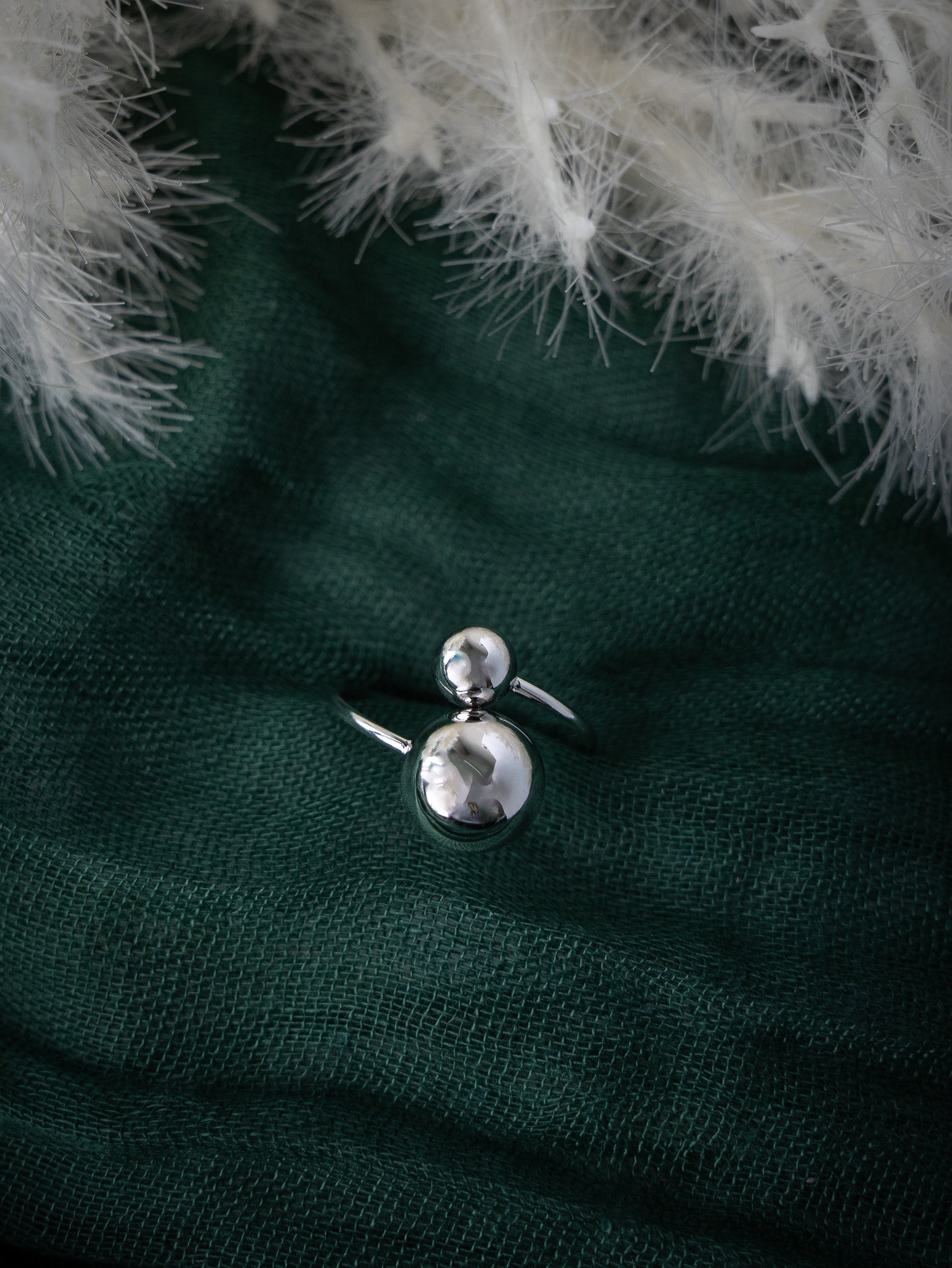 The Nyara Ring showcases a sophisticated design with its silver PVD plated beads forming irregular layered open rings. This unique structure adds depth and elegance, making it a versatile accessory for contemporary fashion. Crafted to complement both casual and formal looks, the ring offers a distinctive style that enhances any ensemble with subtle complexity and refined charm.