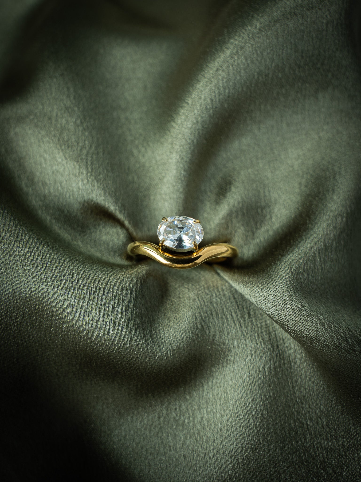 Indulge in luxury with the Reveire Ring. Crafted from 18K plain PVD gold and adorned with an oval-shaped zirconia, this ring exudes sophistication and class. The unique, irregular band adds a trendy twist to this timeless piece, making it a must-have for any jewelry collection. Elevate your style with this gold-plated masterpiece.