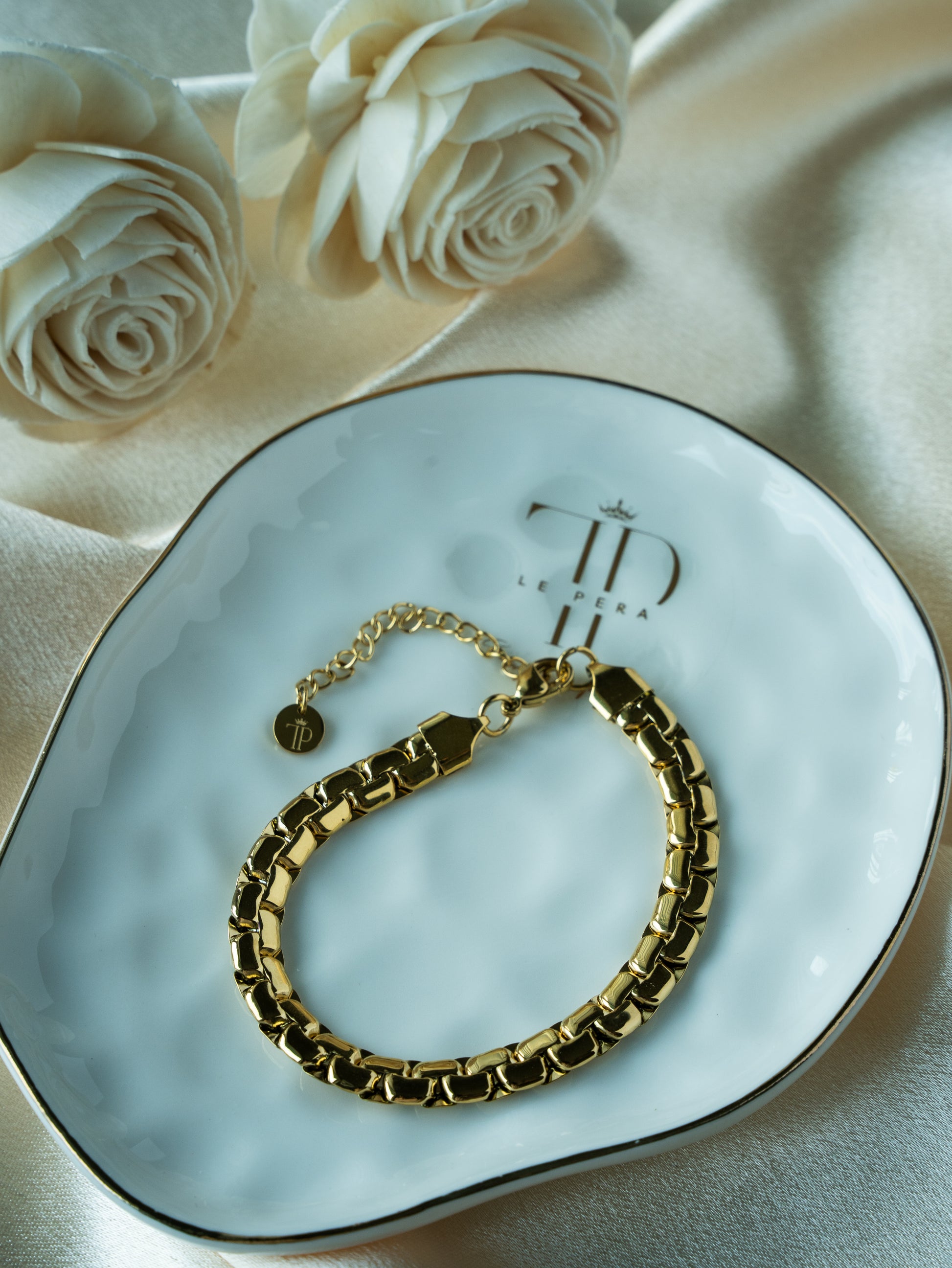 Elevate your style with our Synergy Bracelet, crafted from a minimalist snake bone chain made of high-grade stainless steel. Its sleek design exudes sophistication and luxury, perfect for any occasion. Elevate your look and make a statement with the Synergy Bracelet.