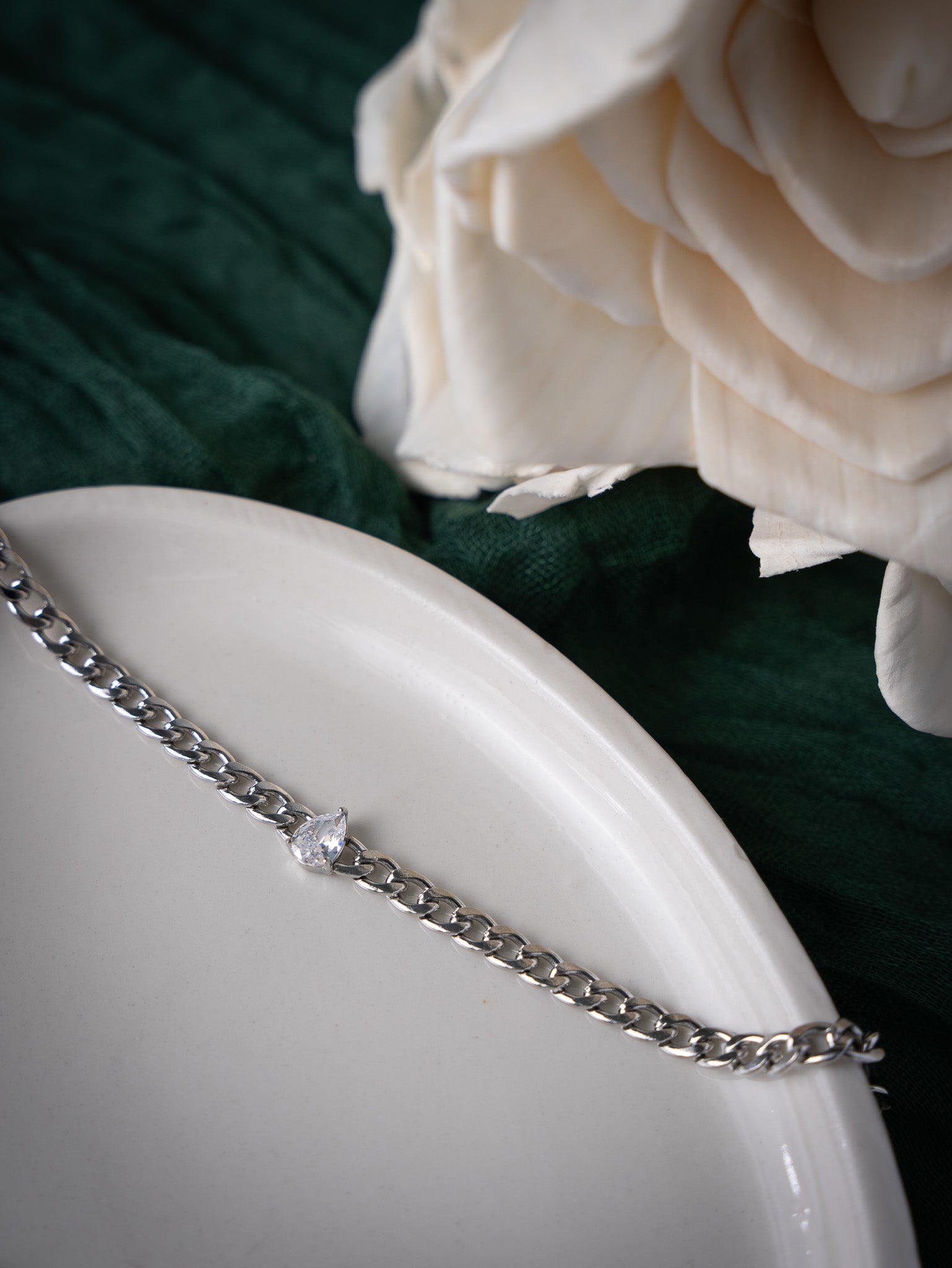 Indulge in the luxurious elegance of our Willow Bracelet. Crafted with high quality stainless steel and adorned with a shimmering teardrop Zircon, this sleek Cuban bracelet will elevate any outfit with its striking shine. Elevate your style and make a statement with this sophisticated piece.